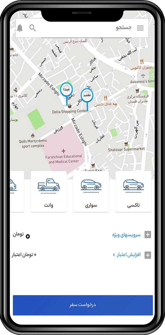 امکان ارسال سفر به صورت هوشمند به نزدیک ترین راننده فعال در مکان